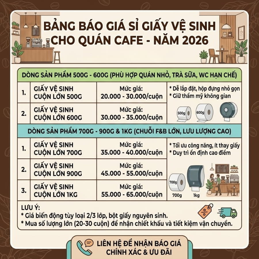 Bảng Báo Giá Sỉ Giấy Vệ Sinh Cho Quán Cafe Năm 2026?