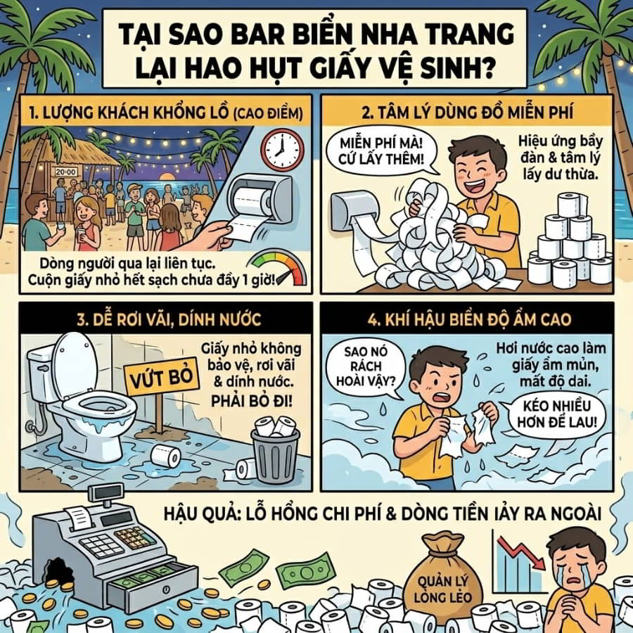Tại Sao Bar Biển Nha Trang Lại Hao Hụt Giấy Vệ Sinh?