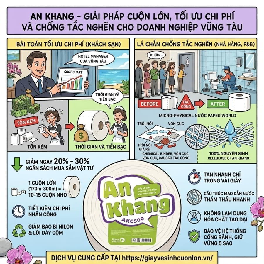 Chị Lan, nữ quản lý của một chuỗi resort 4 sao tọa lạc tại Bãi Sau Vũng Tàu, từng trải qua một “cơn ác mộng” thực sự vào kỳ nghỉ lễ 30/4 năm ngoái. Lượng khách du lịch đổ về quá đông, các cuộn giấy vệ sinh nhỏ trong phòng liên tục hết sạch chỉ sau nửa ngày. Đội ngũ dọn phòng (housekeeping) chạy đôn chạy đáo thay giấy đến kiệt sức. Tệ hại hơn, một số khách hàng phàn nàn vì bồn cầu bị tắc nghẽn do loại giấy kém chất lượng không thể phân hủy, nước tràn lênh láng phá hỏng cả một kỳ nghỉ đắt tiền. Chị Lan chợt nhận ra, một chi tiết tưởng chừng nhỏ bé như cuộn giấy vệ sinh lại đang “ngốn” hàng chục triệu đồng chi phí vận hành và làm rạn nứt hình ảnh thương hiệu. Sự bế tắc đó chỉ thực sự chấm dứt khi chị tìm đến giải pháp tìm kiếm [giấy vệ sinh cuộn lớn giá rẻ vũng tàu] và ứng dụng đồng bộ hóa cho hệ thống của mình. Nếu bạn đang kinh doanh dịch vụ tại thành phố biển này và gặp rắc rối tương tự, bài viết dưới đây chính là “kim chỉ nam” giúp bạn giải phóng rủi ro và tối đa hóa lợi nhuận.