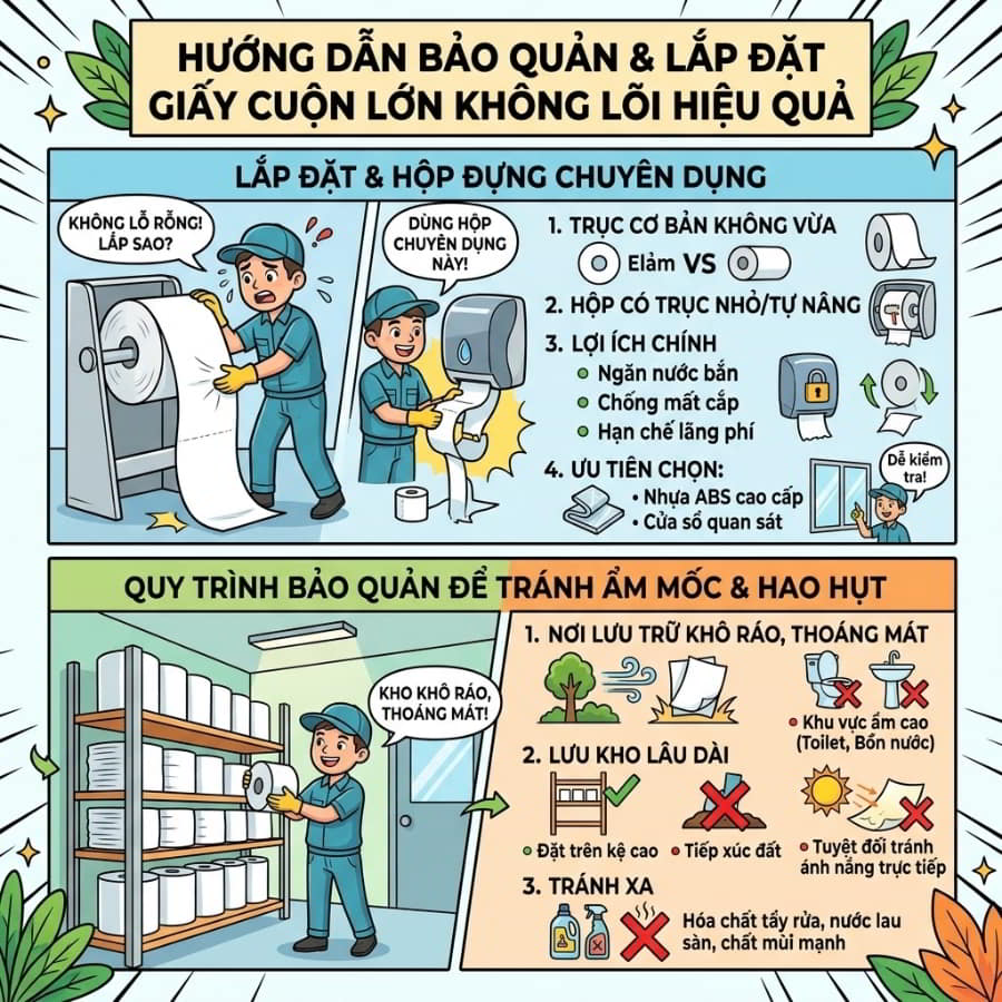 Cách bảo quản và lắp đặt giấy cuộn lớn không lõi hiệu quả nhất?
