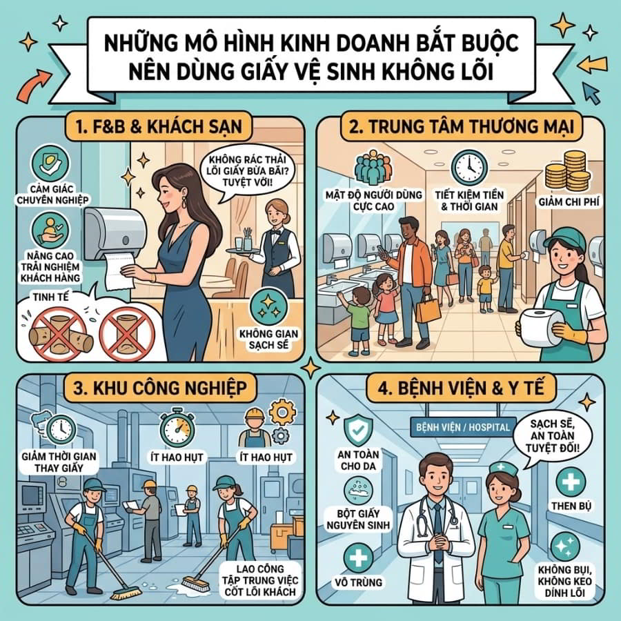 Những mô hình kinh doanh nào bắt buộc nên dùng giấy vệ sinh không lõi?