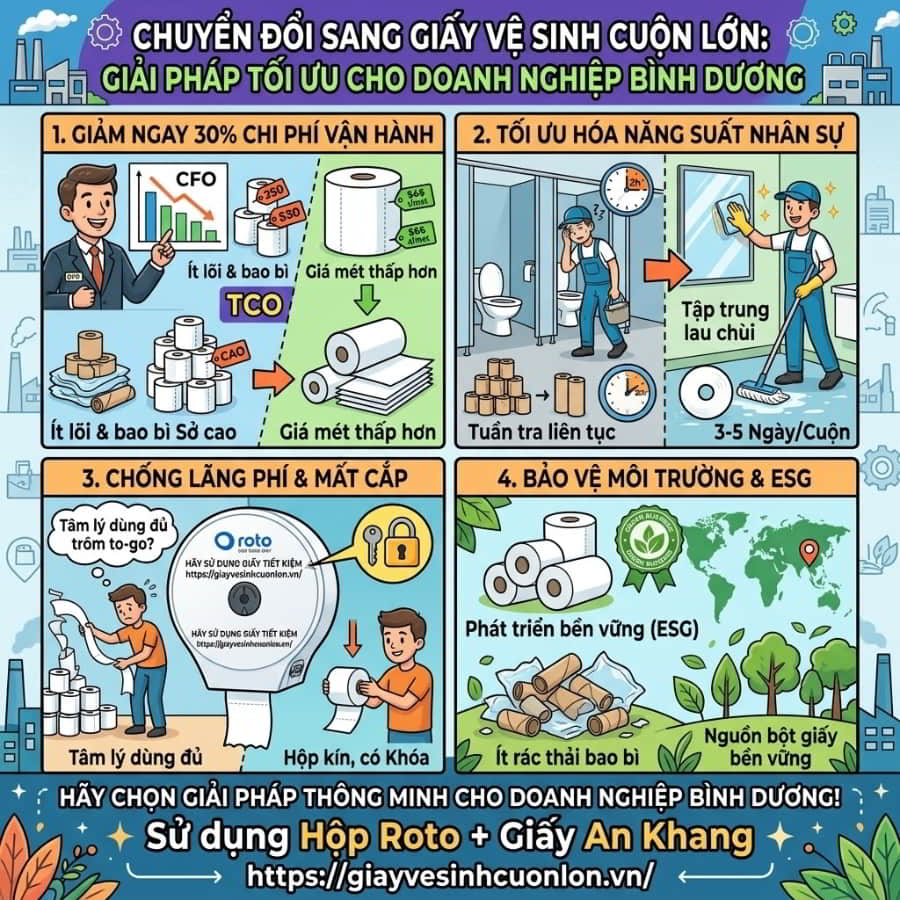 Chuyển đổi sang giấy vệ sinh cuộn lớn tại Bình Dương giúp doanh nghiệp giải quyết những “nỗi đau” nào?