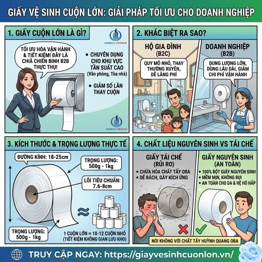 Đừng để doanh nghiệp của bạn lãng phí thêm một đồng ngân sách nào nữa cho những giải pháp vệ sinh lỗi thời. Chuyển đổi sang giấy vệ sinh cuộn lớn là bước đi chiến lược, thông minh và mang lại hiệu quả tức thì. Liên hệ ngay với đội ngũ chuyên gia của Horeca Việt Nam qua website giayvesinhcuonlon.vn để nhận ngay bảng báo giá sỉ ưu đãi nhất 2026 và chương trình tài trợ hộp đựng giấy độc quyền tại Bình Dương!