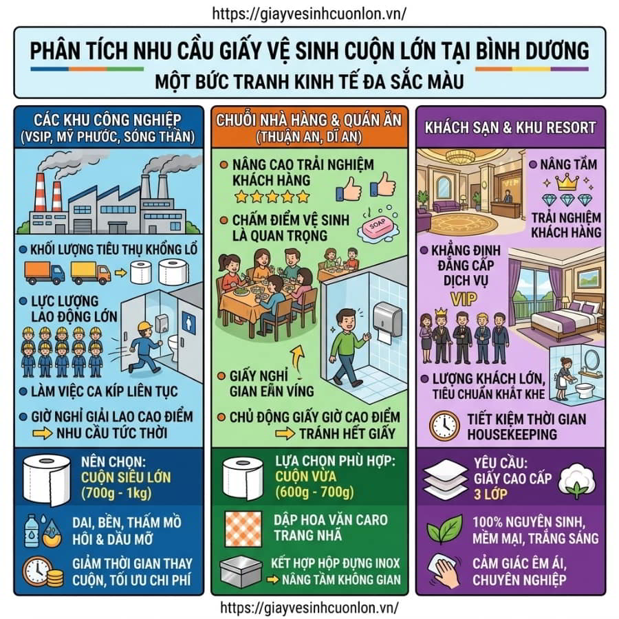 Phân tích nhu cầu sử dụng giấy vệ sinh cuộn lớn theo từng lĩnh vực tại Bình Dương?