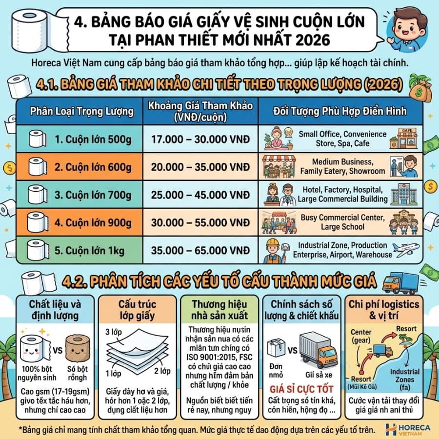 4. Bảng Báo Giá Giấy Vệ Sinh Cuộn Lớn Tại Phan Thiết Mới Nhất 2026