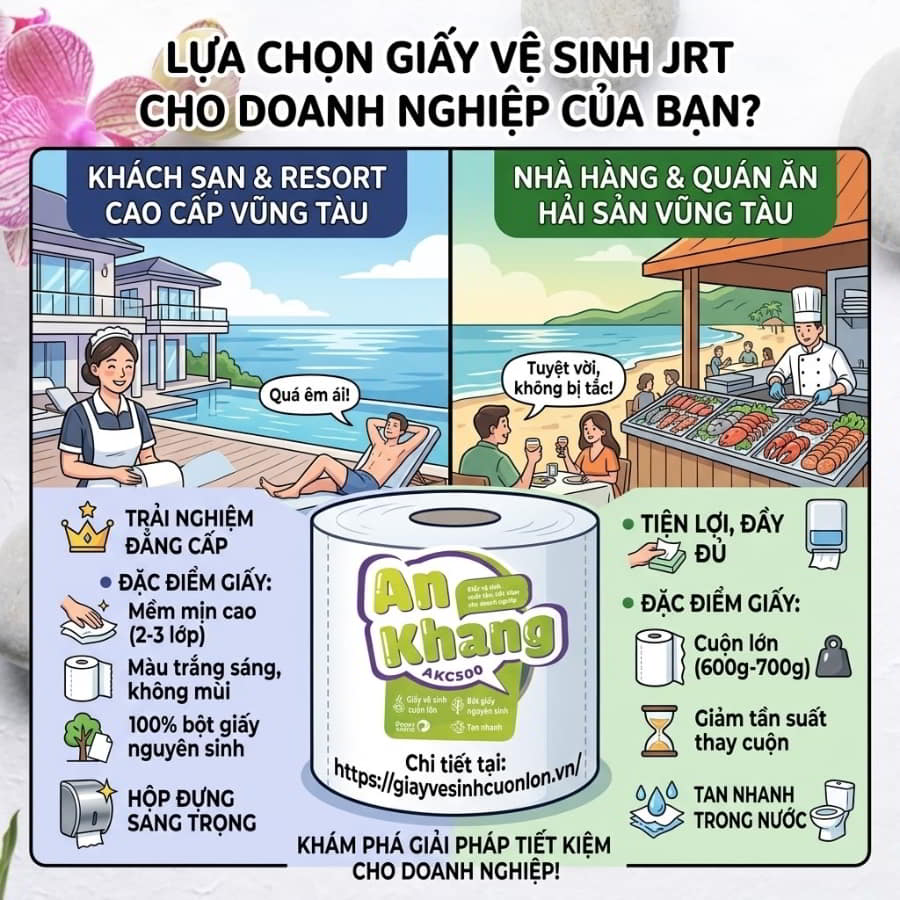Gợi ý hành động: Nếu cơ sở kinh doanh của bạn tại Vũng Tàu vẫn đang lãng phí hàng triệu đồng mỗi tháng cho giấy cuộn nhỏ, đã đến lúc thay đổi! Liên hệ ngay với Horeca Việt Nam qua website giayvesinhcuonlon.vn để nhận ngay báo giá sỉ siêu ưu đãi, mẫu thử miễn phí và chương trình tài trợ hộp đựng cao cấp. Chấm dứt nỗi lo vật tư, nâng tầm đẳng cấp dịch vụ ngay hôm nay!