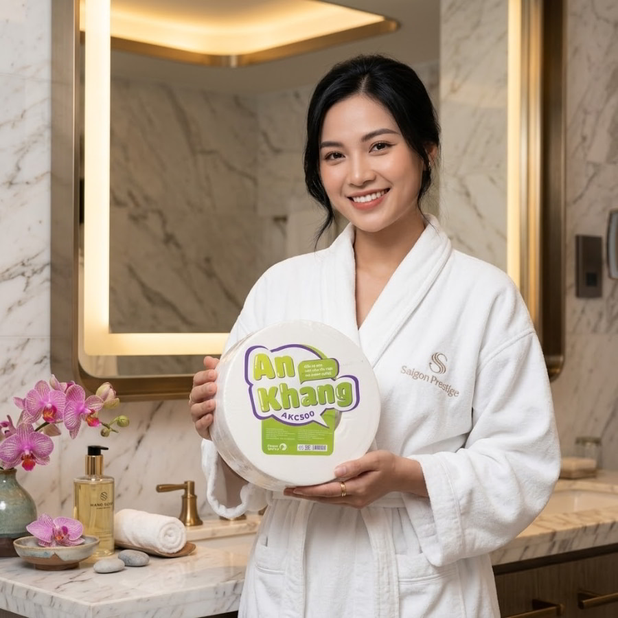Các dòng giấy vệ sinh cuộn lớn cao cấp dành riêng cho khách sạn được sản xuất từ 100% bột giấy nguyên sinh, đảm bảo độ mềm mại, êm ái và an toàn tuyệt đối, không gây kích ứng da. Khi kết hợp cùng hộp đựng giấy chuyên dụng bằng inox hoặc nhựa ABS sang trọng, không gian phòng tắm không chỉ trở nên đẳng cấp, đồng bộ hóa thiết bị mà còn bảo vệ giấy khỏi tình trạng ướt nhẹp hay bám bụi. Đặc biệt, cấu trúc giấy dễ tan trong nước giúp bảo vệ hệ thống toilet khách sạn khỏi tình trạng tắc nghẽn.