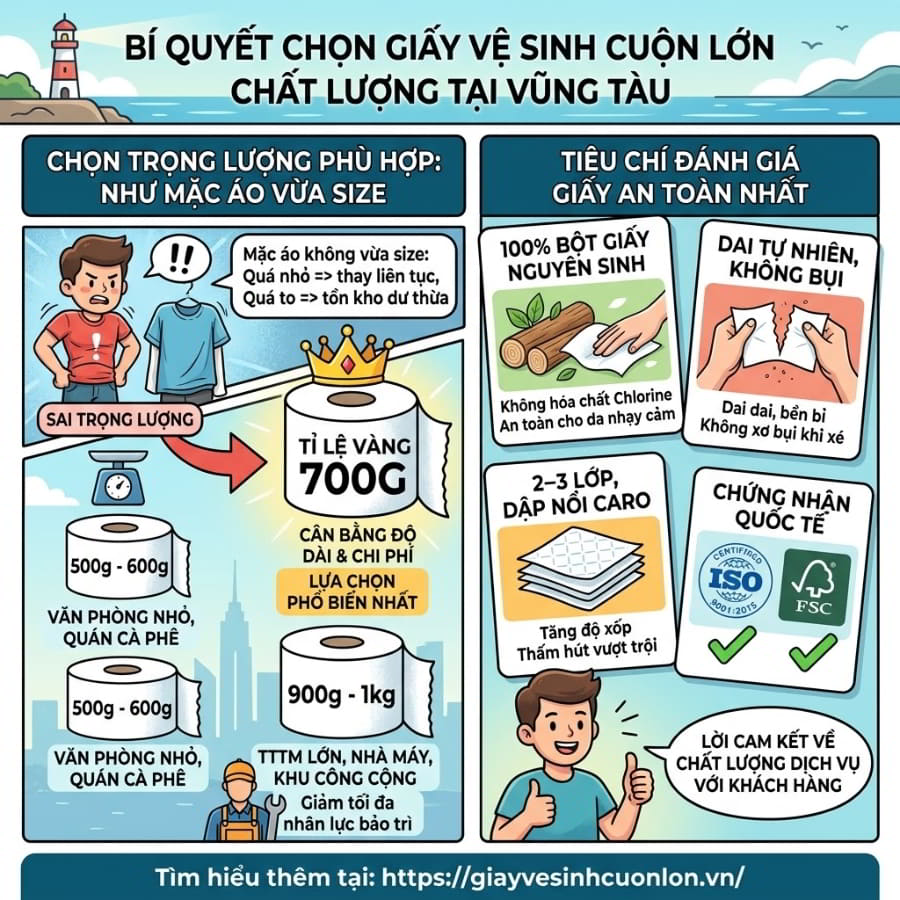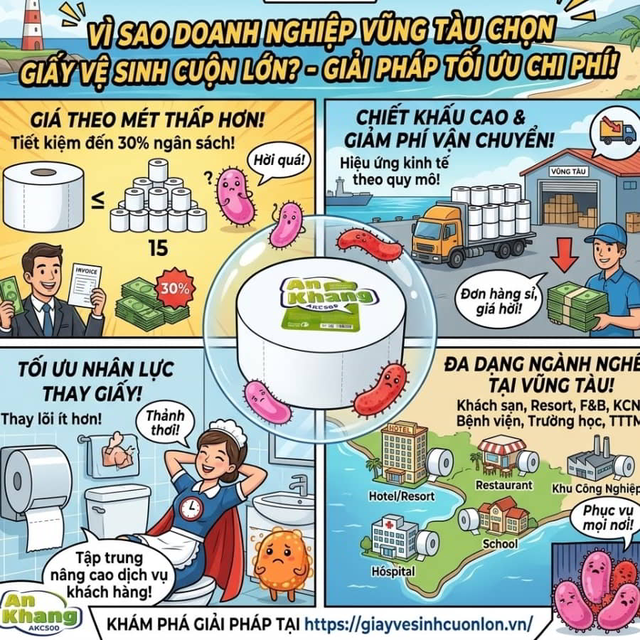 Bạn là chủ một khách sạn, resort hay nhà hàng tại thành phố biển Vũng Tàu tấp nập? Đã bao giờ bạn phải đối mặt với cơn ác mộng mang tên “tắc nghẽn bồn cầu” ngay giữa mùa cao điểm du lịch chỉ vì khách hàng sử dụng loại giấy vệ sinh kém chất lượng? Hay bạn đang đau đầu vì chi phí vật tư tiêu hao hàng tháng cứ tăng vọt, trong khi nhân viên dọn phòng phải chạy đôn chạy đáo để thay những cuộn giấy nhỏ xíu liên tục? Nếu những nỗi đau này đang ăn mòn lợi nhuận của bạn, thì việc chuyển sang tìm nguồn mua sỉ giấy vệ sinh cuộn lớn ở vũng tàu chính là lối thoát hoàn hảo. Hãy cùng khám phá giải pháp giúp bạn cắt giảm rủi ro vận hành và tối ưu hóa chi phí đến mức tối đa!