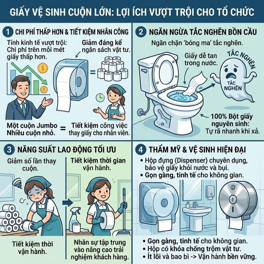Giấy vệ sinh cuộn lớn mang lại lợi ích gì cho tổ chức?
